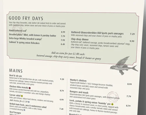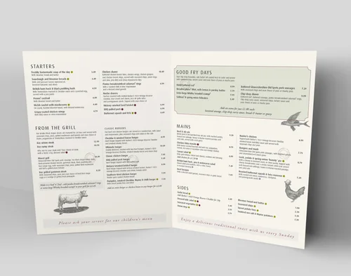 Production of menus for new pub chain Goodwins Bar and Kitchen.